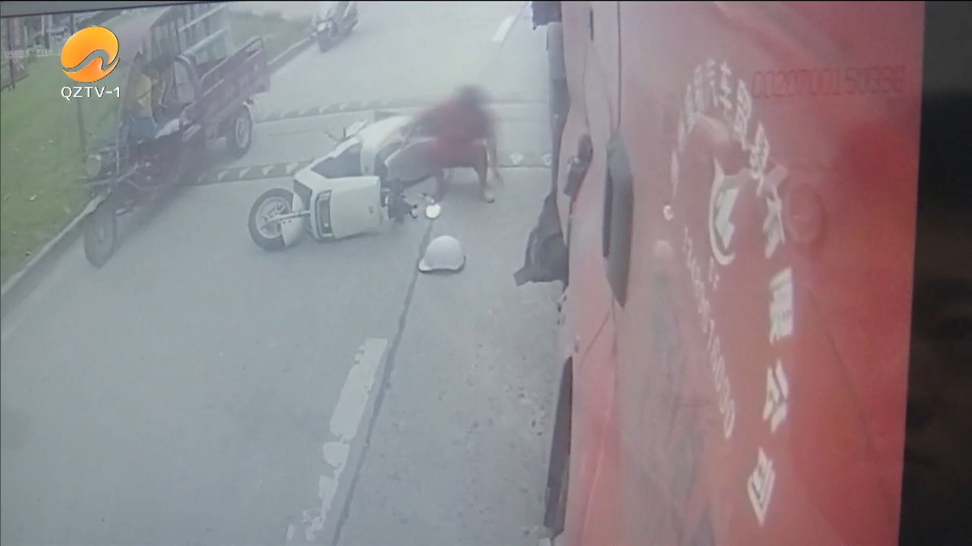 安溪:电动车刮碰大货车 安全头盔成“救命盾”