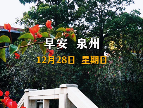 今天是12月28日,星期日,农历十一月初九,早安,泉州。用加法爱人,用减法生气。周末愉快!